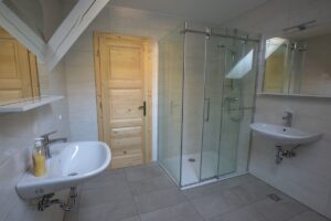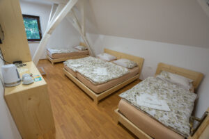 Za nočitev so v gostišču na voljo štiri urejene sobe, kopalnica in toaletni prostori.